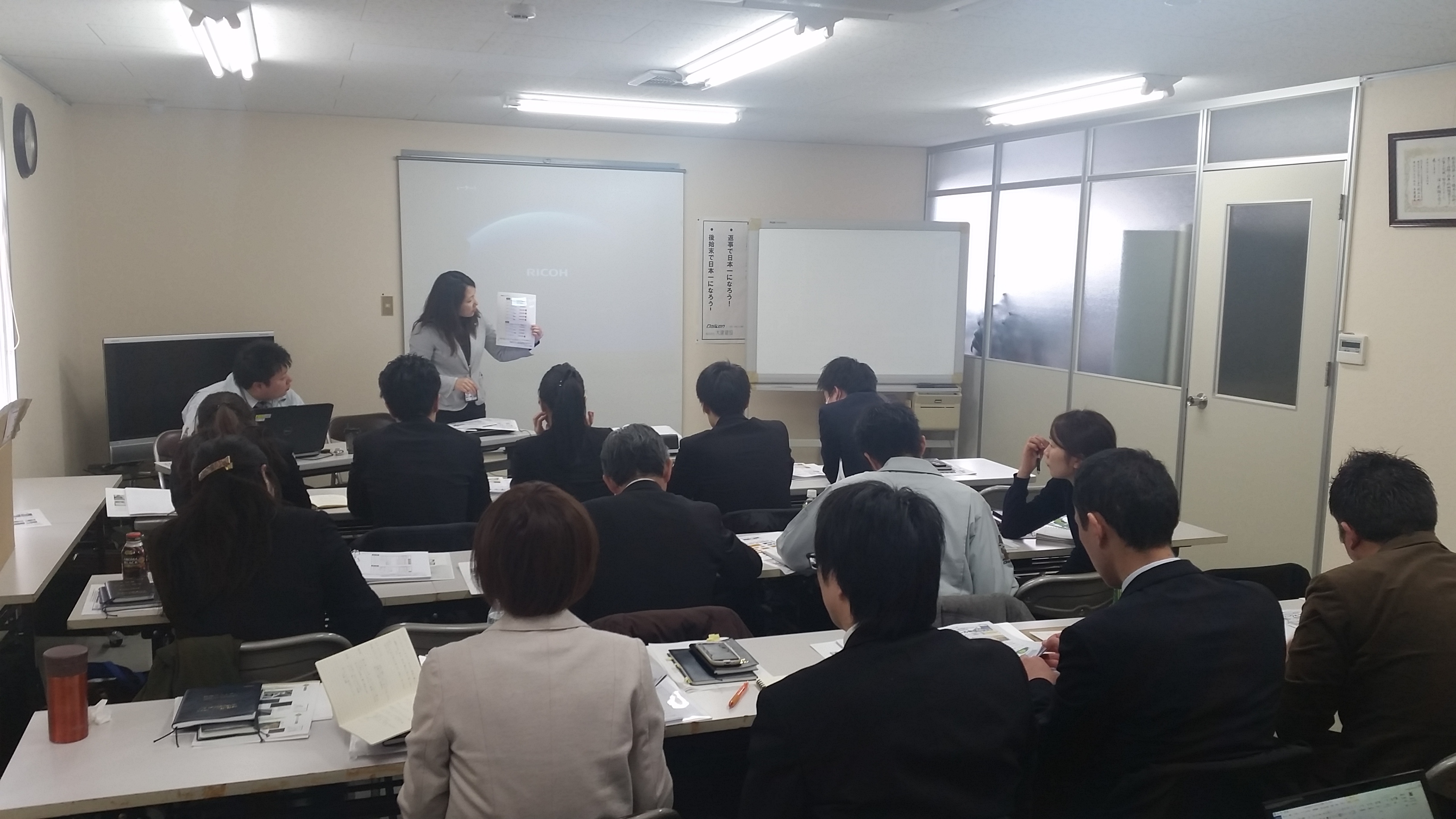 一日をより活性化する為の朝礼。我社は、創業48年。住宅事業部は11年目。朝礼は以前より当然ながら行っておりまたが、