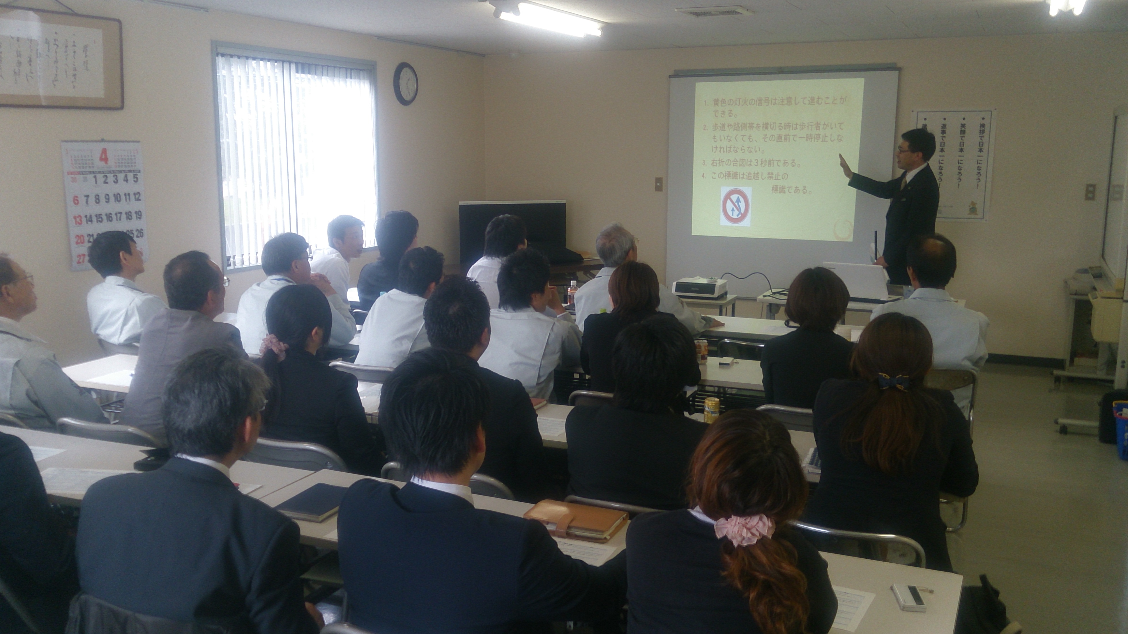 そして、社内では、交通安全委員会の主催による自動車学校から講師の方をお招きしての安全運転講習会。