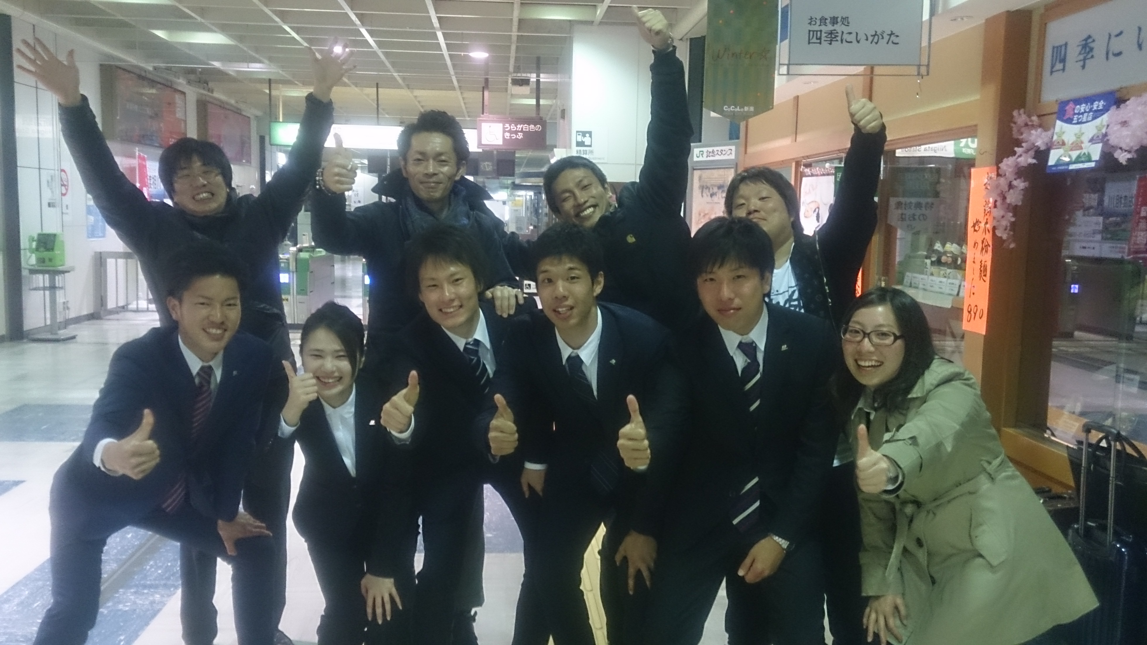 私と高橋部長、石川部長、番場店長で新潟駅に迎えに。