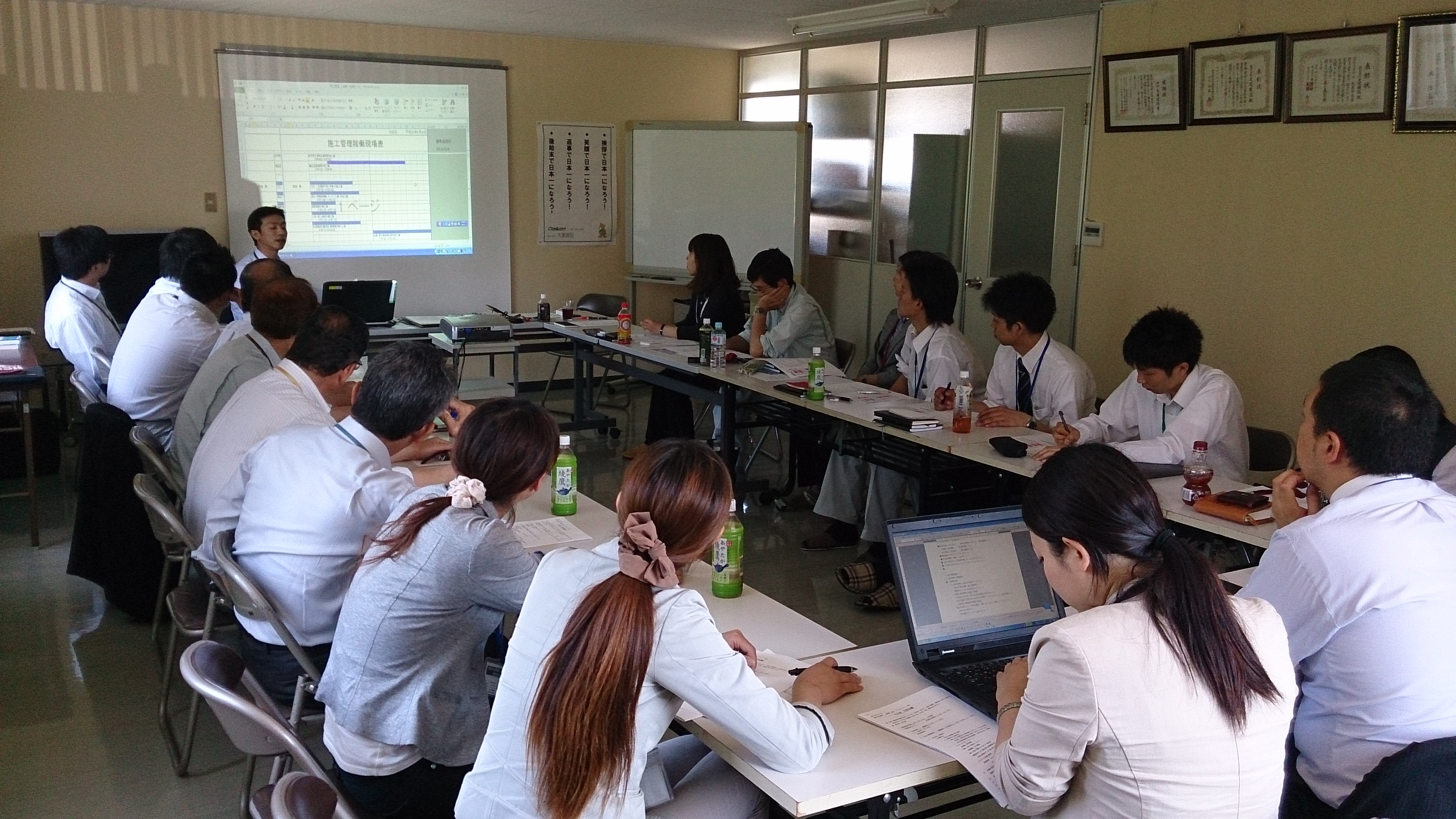 そして、午後より部長、会長打合せ~管理部との業務改善委員会~工事部会議~