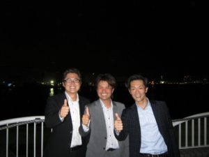 ご一緒した長野県、リフォームワン、山崎社長、中村常務と東京湾?をバックに。