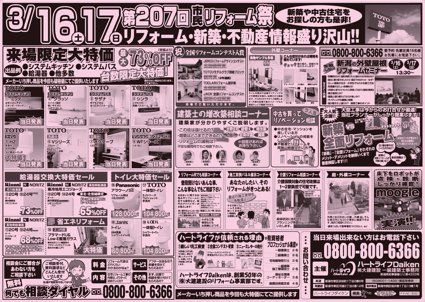 弁天インター降りてすぐ!『TOTO』にて開催。第207回を迎え、地元・新潟市の皆様にご愛顧いただいている『リフォーム相談会』です。イベントならではの大特価品や展示商品も揃えております!