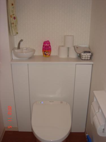 お客様のご要望で、脱衣側からと洋室から、どちらからも使えるクロゼットを新設しました。とても便利そうで、アイディアいっぱいの収納に仕上がりました。トイレもアクセントのクロスが素敵で、癒しの空間となりました。