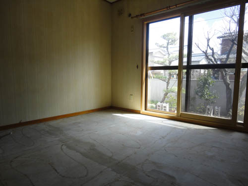 既存のカーペットをはがし終えた所。