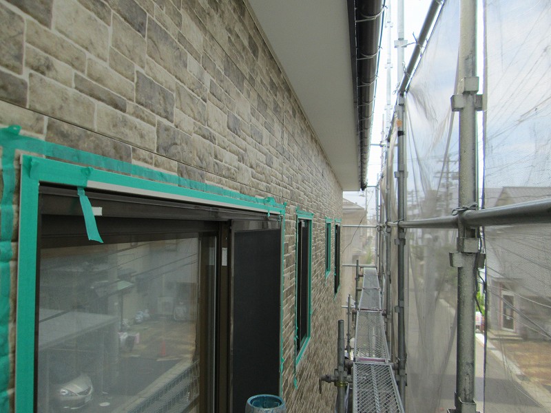 まずは、“すき間”の両サイド(外壁材と窓枠)に、マスキングテープで養生をします。余計なところに『シーリング材』が着かないようにします!