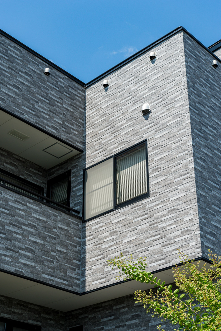 以前にもリフォームをさせていただいたお客様です。普通の住宅の2~3倍はある外壁面積でしたので、日数はかかりましたが、仕上がり等に満足頂けて良かったです!また、外壁材はKMEWの窯業系サイディング光セラのセラトピアシリーズを使用し、見た目もインパクトの強い仕上がりになりました。